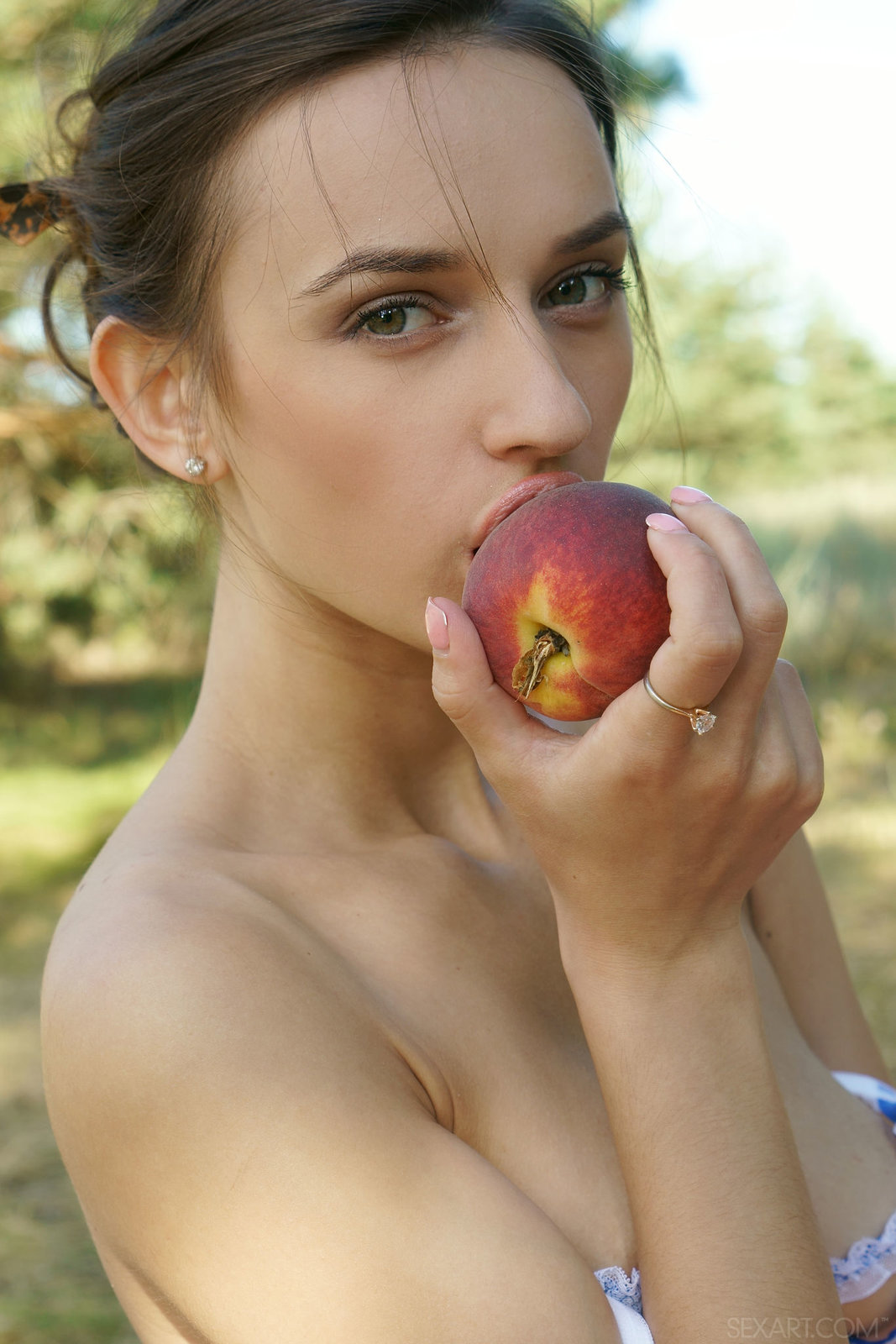 Naturalna laseczka wypina swe naturalne pośladki. Kusząca dziewczyna wyciąga na wierzch swoje cycuszki ze staniczka i delikatnie się pieści. Kusząca dziewczyna delektuje się soczystym jabłuszkiem, a wszyscy faceci delektują się jej soczystym kuperkiem. Słodka i naturalna pani.