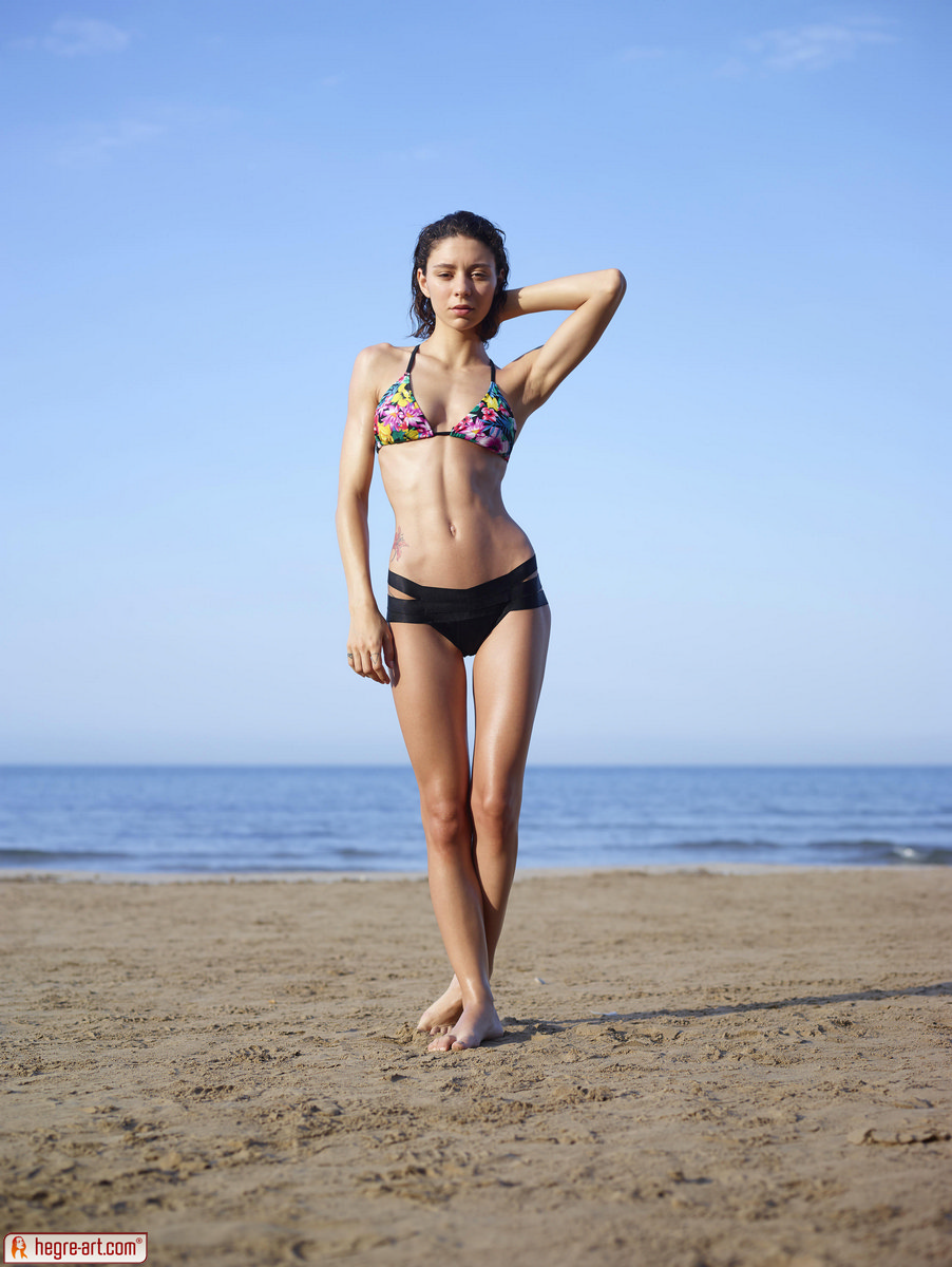 Naga dziewczyna targa się nago na piasku. Laska w bikini wygląda seksownie, ale bez niej wygląda jeszcze lepiej. Dzika dziewczyna ma słodką piczkę i mega ładną buźkę. Kusząca laseczka siedzi na piasku i rozkłada nóżki.