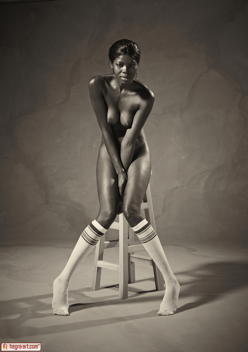 Świetna laseczka ma czekoladowe nóżki. Wielu facetów chciałoby, żeby laseczka oplotła ich kark swoimi długimi nóżki. Dzika dziewczyna wypina naturalnie jędrne pośladki przy taborecie. Śliczna paniusia czuje się swobodnie będąc nago.