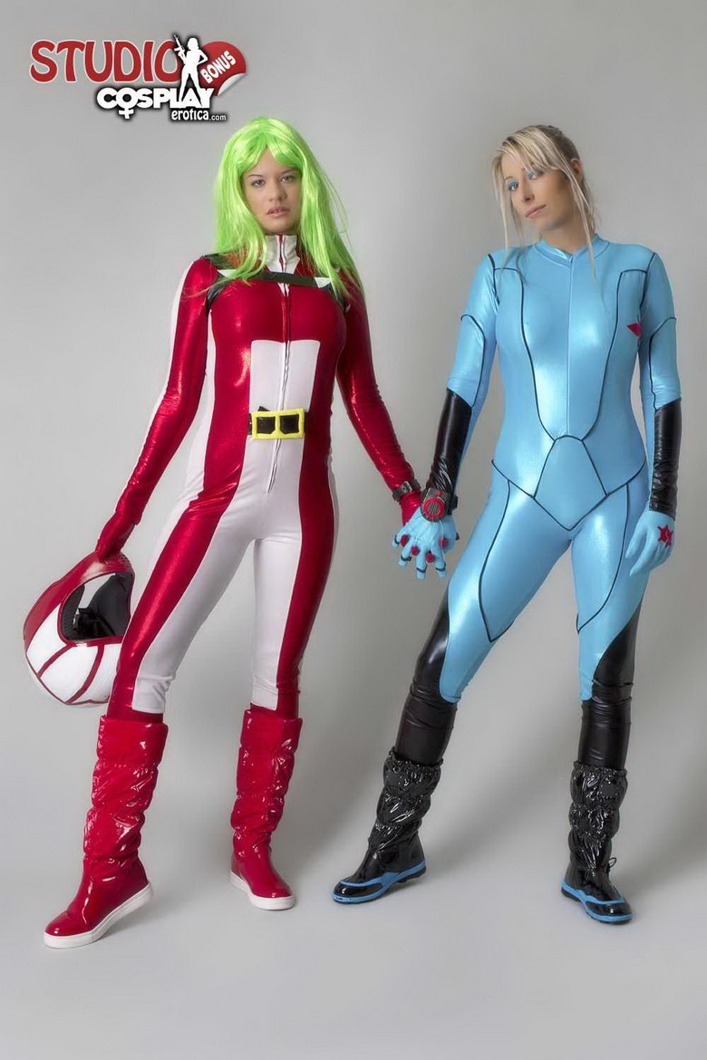Laski w kombinezonach motocyklowych pozują na sesji fotograficznej. To miały być zwykłe fotki reklamujące bezpieczną jazdę jednak te laski lubią czasem zaszaleć i robią ze zwykłej reklamy niesamowicie kuszącą sesje zdjęciową. Laski wyskakują z ciuszków i pozują nago.